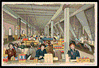 The American Cereal Co. issued a set of 12 trade cards as souvenirs of the 1893 World's Fair. These cards copied a set of paintings displayed at the American Cereal Co. exhibit and titled "The Procession Of The Seasons." The artists were H. Dalton Jones (1848 - 1927) and his brother Francis C. Jones (1857 - 1932) whose names appear on the first 11 cards. Henry D. Seymour and William Heston established the Quaker Mill Co. in Ravenna, OH, and registered the now-famous trademark in 1877. In 1888, Quaker merged with six other companies to form the American Cereal Co. The combined company used the Quaker Oats name for its products and then took it for the corporate name in 1901 when the headquarters was placed in Chicago. These 5 x 7-1/2 inch cards were printed by Armstrong & Co. Lith. Boston, and copyrighted 1893 by The American Cereal Co. They were sold at the American Cereal Exhibit for 25 cents each or could be mailed as a premium for product orders placed at the exhibit. Shown below from left to right and top to bottom are thumbnail images (at 25 percent of actual size) of an envelope used to mail these cards, the 12 trade cards forming the set, and the reverse sides of two of the cards. The first 11 cards of the set show the sequence of producing the Quaker Oats from planting to manufacture and distribution, and the 12th shows the Pavilion at the fair. These cards were again used in 1901 at the Pan American Exposition in Buffalo, NY, and the last thumbnail shows the American Cereal Co. exhibit at that fair. Click on a thumbnail for a larger view, or begin viewing the cards in slideshow fashion by clicking here. |