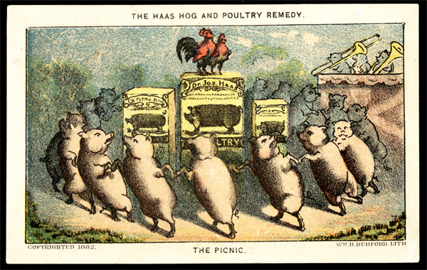Dancing hogs circle the remedy while band plays and roosters serenade.