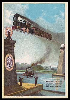 3 - Merrick's Thread, used as a railroad bridge, captioned "Merrick's Thread Its Credit Sustains Even To Carrying Railroad Trains."