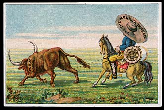 12 - Merrick's Thread, used as a cowboy's rope to lasso a steer branded with the text "Public Favor."