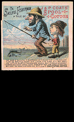 49 - J & P Coats' Spool Cotton, fisherman loses fish with broken lines until he uses the Coats' Spool Cotton (watch animation).