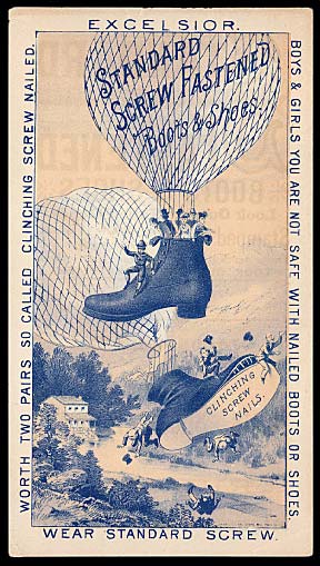 28 - Standard Screw Fastened Boots & Shoes, Standard Screw hot air balloon soars while Clinching Screw Nails balloon crashes.