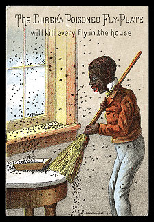 Eureka Poisoned Fly-Plate. One of a set of cards by Clay & Richmond advertising this product. VG, creases UL and LR corners, not trimmed (printed without margins). Brought $34 in Trade Card Place Auction 015 on 11/8/00.